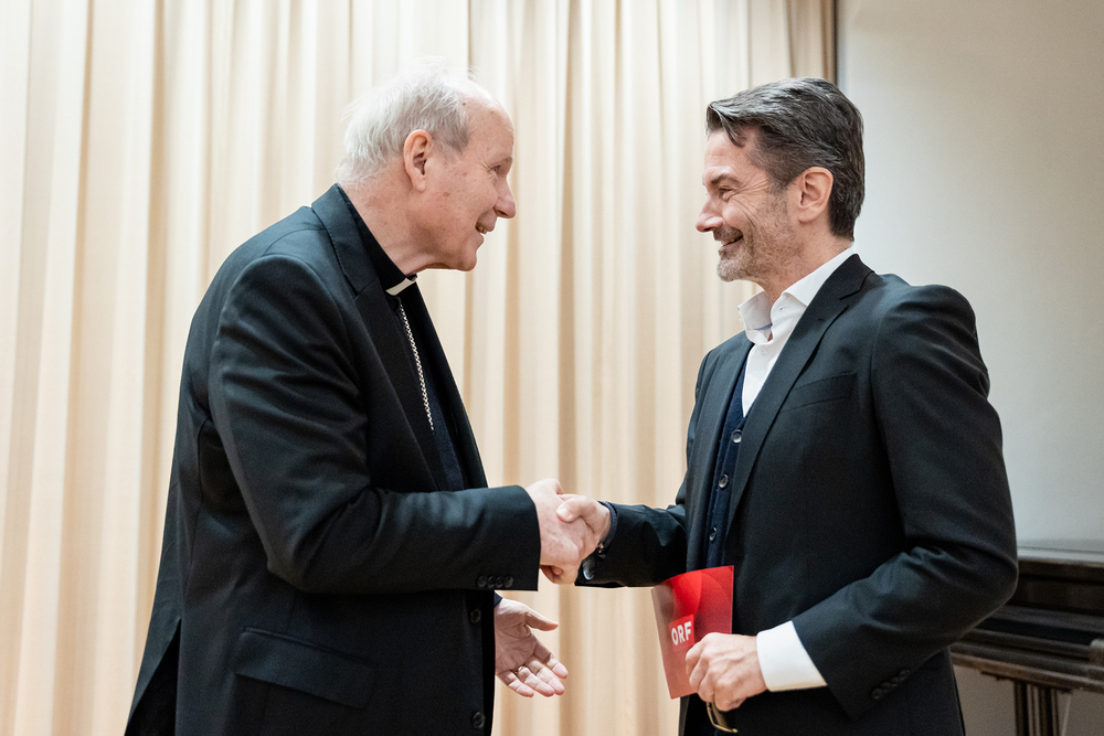 Kardinal Schönborn lud Medienschaffende zur Adventbegegnung ins Wiener Priesterseminar ein – ORF-Generaldirektor Weißmann würdigte dabei Schönborns Verdienste um den gesellschaftlichen Zusammenhalt in Österreich. Wir waren mit der Kamera dabei.