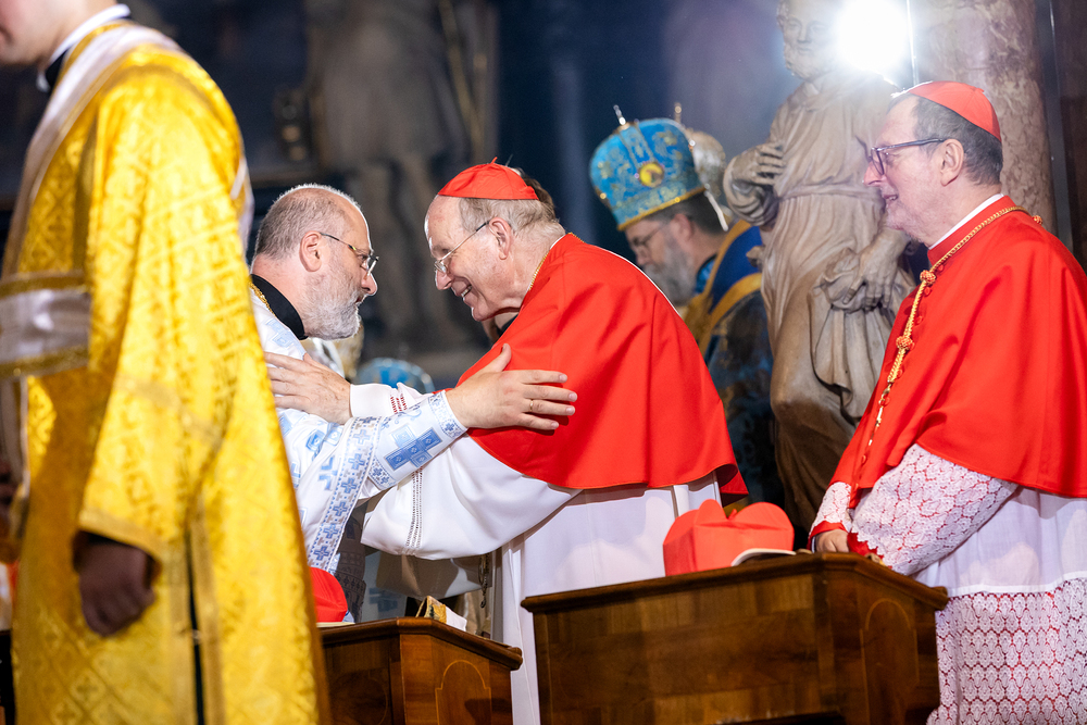 Gottesdienst im byzantinischen Ritus war Mittwochabend liturgischer Höhepunkt der Wiener Vollversammlung der Bischöfe der katholischen Ostkirchen Europas - Kardinal Schönborn in Predigt: "In der Liturgie sind wir ganz besonders mit dem Himmel verbunden", gerade in Zeiten des Krieges und der Not. Wir waren mit der Kamera dabei.