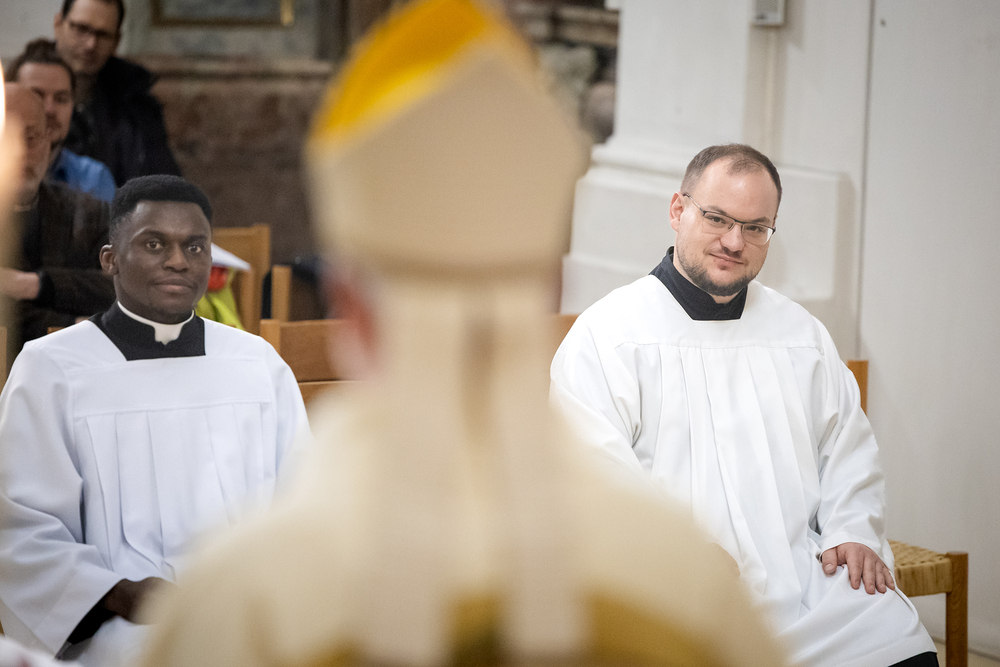 Die Admissio ist ein bedeutender Schritt auf dem Weg zur Weihe. In einer feierlichen Liturgie wird der Kandidat offiziell in die letzte Phase der Vorbereitung auf das Weihesakrament aufgenommen. Mit diesem Akt bekennt der Kandidat öffentlich seine Bereitschaft, den Dienst in der Kirche anzunehmen und seinen Weg der Berufung weiterzugehen. Diese Feier drückt die Anerkennung der Kirche aus und stärkt die Verbindung zwischen dem Kandidaten und der Gemeinschaft. Durch Gebet, Segen und Zuspruch wird der Kandidat auf seinem weiteren geistlichen Weg begleitet und ermutigt. Unter die Weihekandidaten aufgenommen wurden die Seminaristen Philipp Gartlehner und Henry Ekene Obi. Wir waren mit der Kamera dabei.