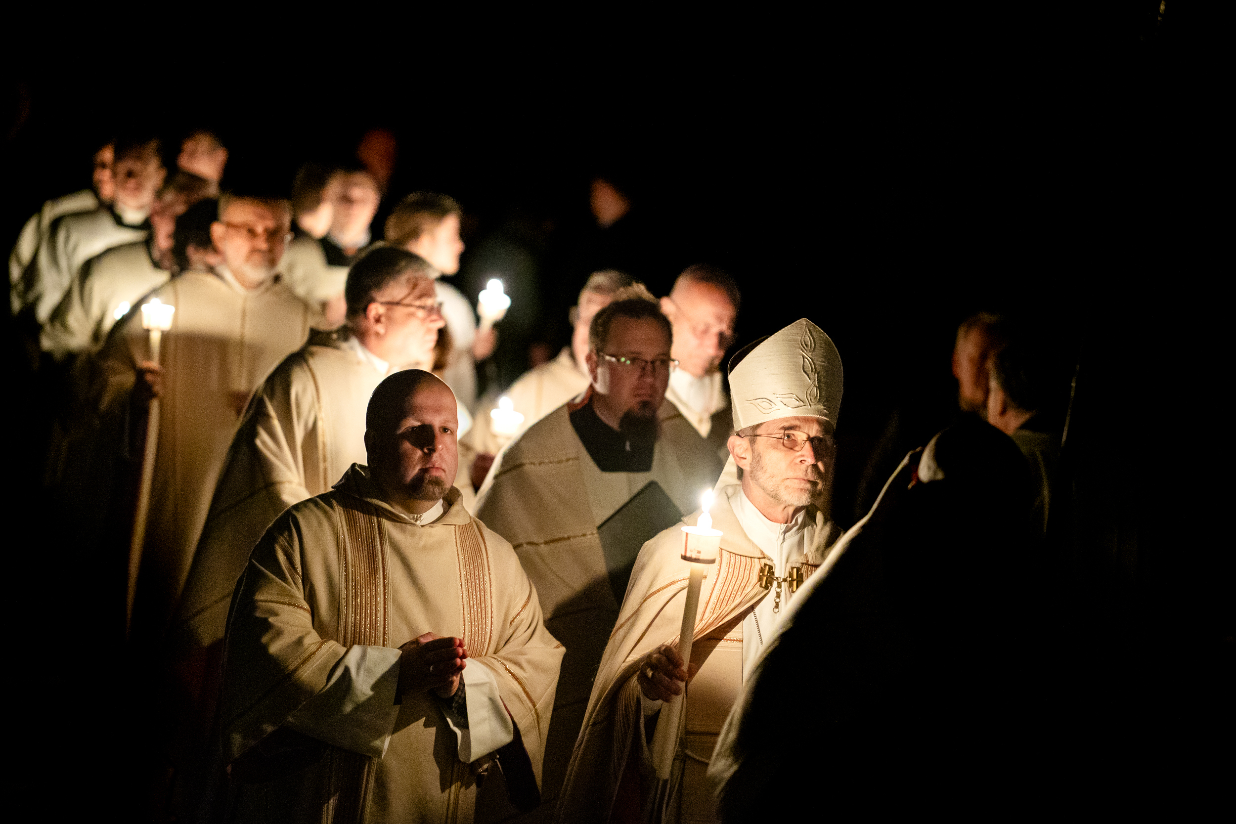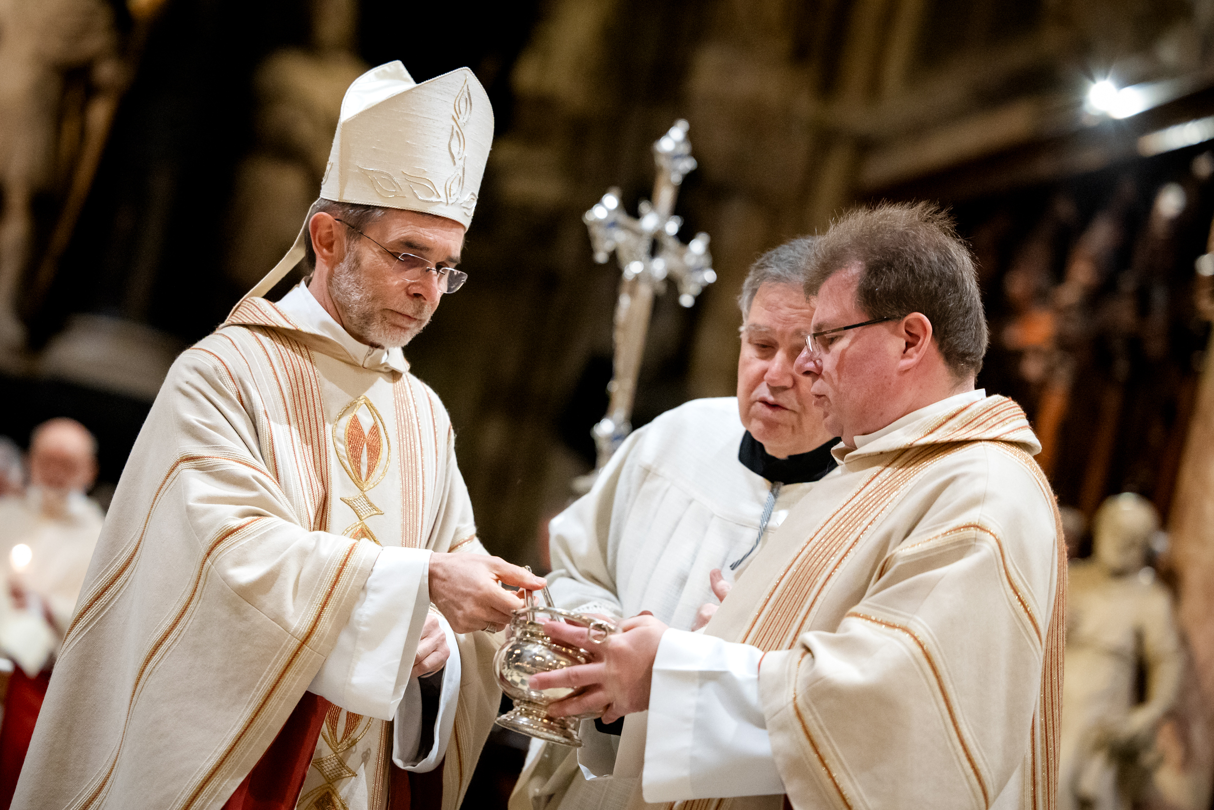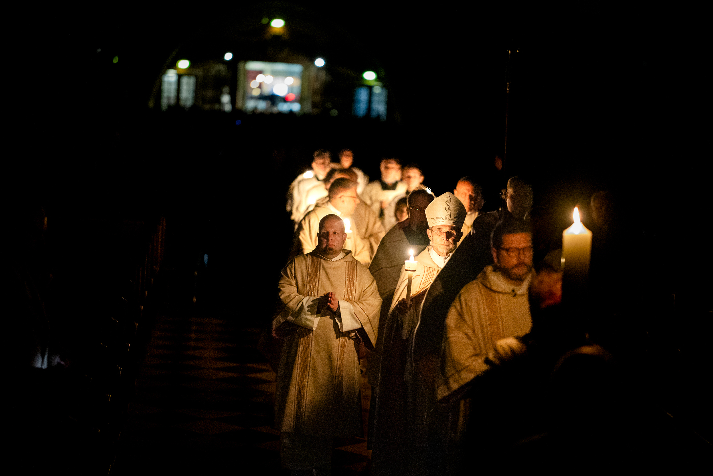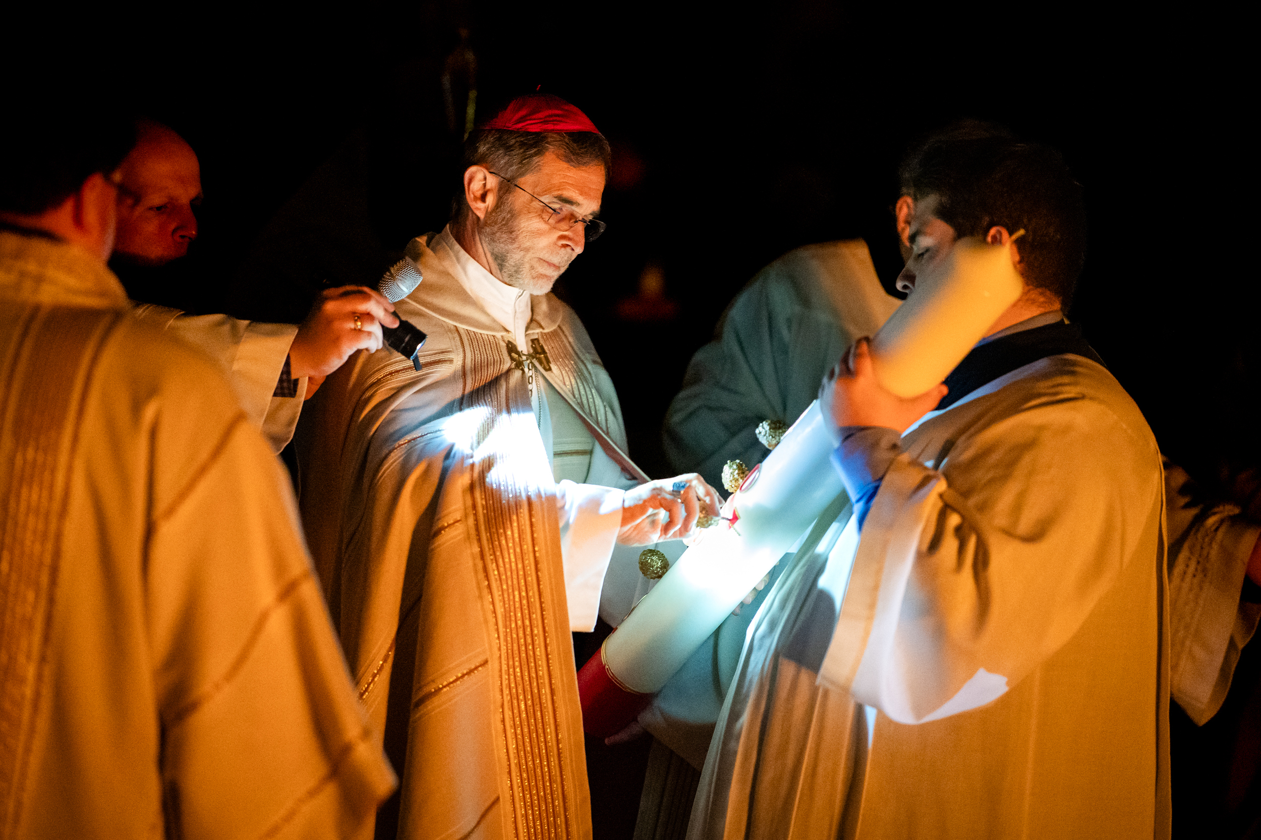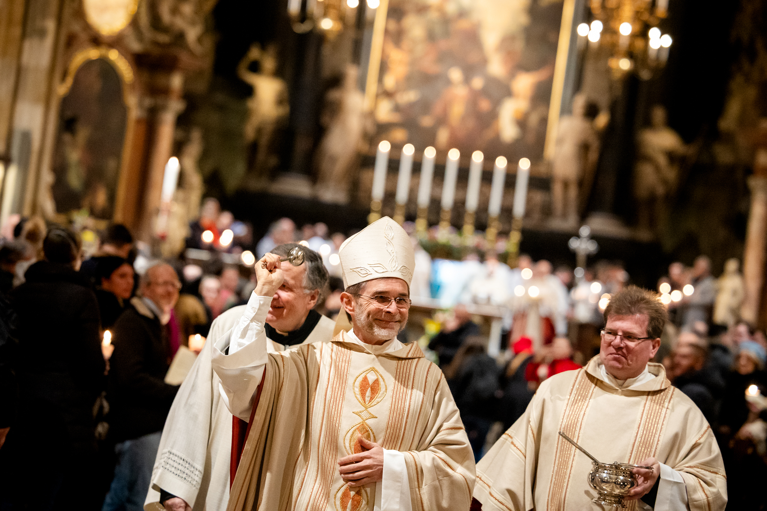 Die Osternacht ist die Feier des Lebens. Ihre Liturgie besteht aus vier Teilen – der Lichtfeier, dem Wortgottesdienst, der Tauffeier und der Eucharistiefeier. Die Lichtfeier beginnt außerhalb des Doms im Hof des Erzbischöflichen Palais. Hier wird die Osterkerze am Osterfeuer entzündet und zum Dom getragen – damit beginnt die Feier der Osternacht. Wir waren mit der Kamera dabei – unter der Leitung unseres Erzbischofs Josef Grünwidl.